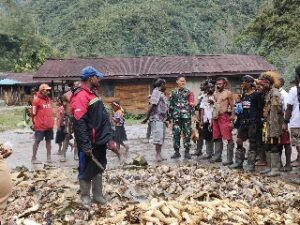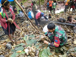 Jalin Kebersamaan, Satgas Yonif R 631/Atg Gelar Bakar Batu Bersama Masyarakat Beanekogom Distrik Tembagapura Mimika