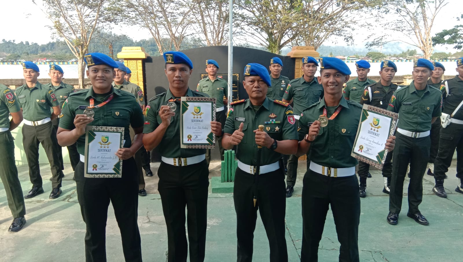 Adapun prajurit yang berprestasi tersebut yakni Serda Galung Ramadhan Kurniawan peraih mendali emas pada cabang tinju kelas 67-71 Kg dan pada kelas 75-80 Kg Prada Basri Jola Badary meraih mendali perak, sedangkan Serda M. Raihandra L Barus meraih mendali perak yang turun pada cabang Taekwondo di kelas Kyorugi Under 87 Kg Putra.