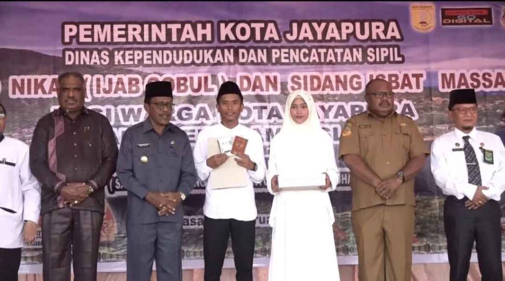 “Program nikah massal jelang hut kota jayapura gratis dan tidak dipungut biaya sepeserpun, perkawinan merupakan peristiwa penting dalam kehidupan dan tercatat dalam lembaran melalui administrasi kependudukan untuk mendapatkan berbagai kebutuhan dalam dokumen kependudukan.Ujarnya.