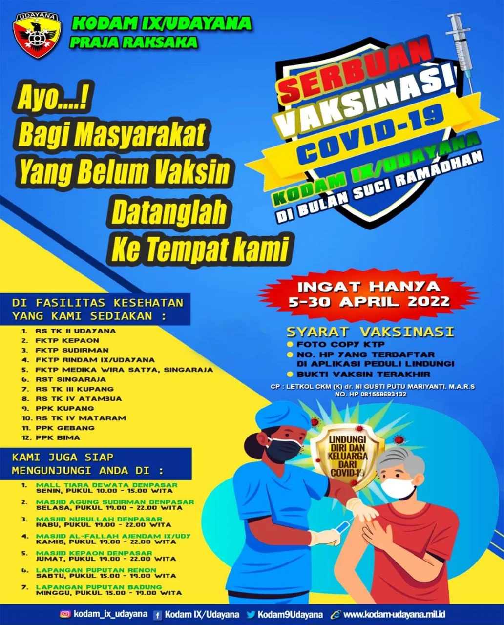 ADA YANG BELUM VAKSIN? SEGERA DATANG KE SERBUAN VAKSINASI KODAM IX/UDAYANA, CATAT JADWALNYA!