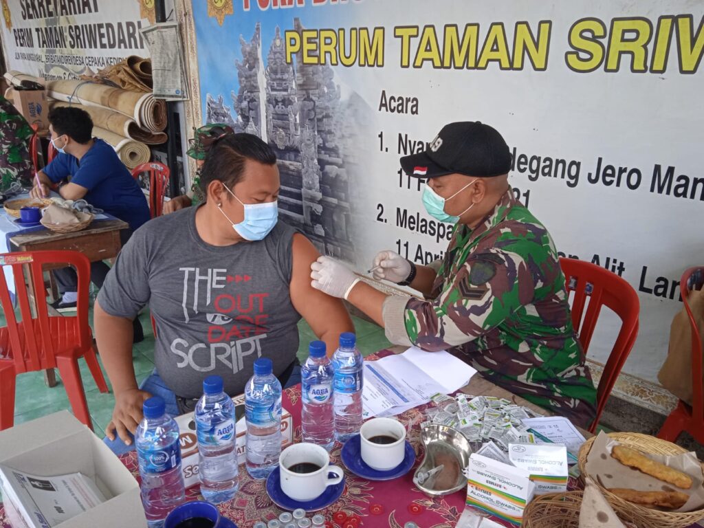 Dandim mengatakan bahwa Vaksinasi hari ini telah dilaksanakan di wilayah Koramil Kediri oleh Tim Vaksinator Mobile Kodim 1619/Tabanan di lingkungan perumahan Sriwedari, Banjar Batan Duren, Desa Cepaka, Kecamatan Kediri, dengan melakukan vaksinasi dosis lanjutan tahap 3 booster terhadap 180 orang masyarakat setempat.