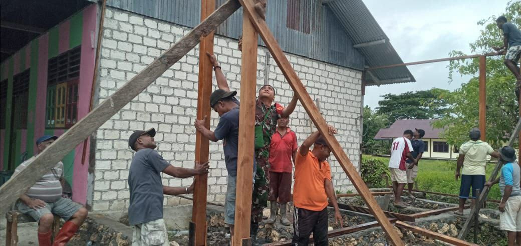 Sementara itu, Pendeta Elimelek Watopa juga turut memberikan apresiasinya atas kehadiran Babinsa dalam membantu percepatan pembangunan gedung Serbaguna ini.