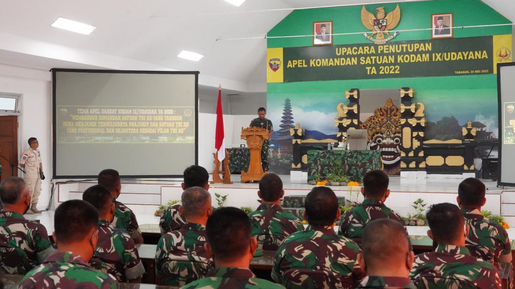 Tabanan, “TABLOIDNUSANTARA” – Dengan mengucap syukur kepada Tuhan Yang Maha Esa, pada hari ini Jumat tanggal 20 Mei 2022 Pukul 08.48 WITA, Apel Dansat Kodam IX/Udayana TA 2022 dinyatakan secara resmi ditutup.