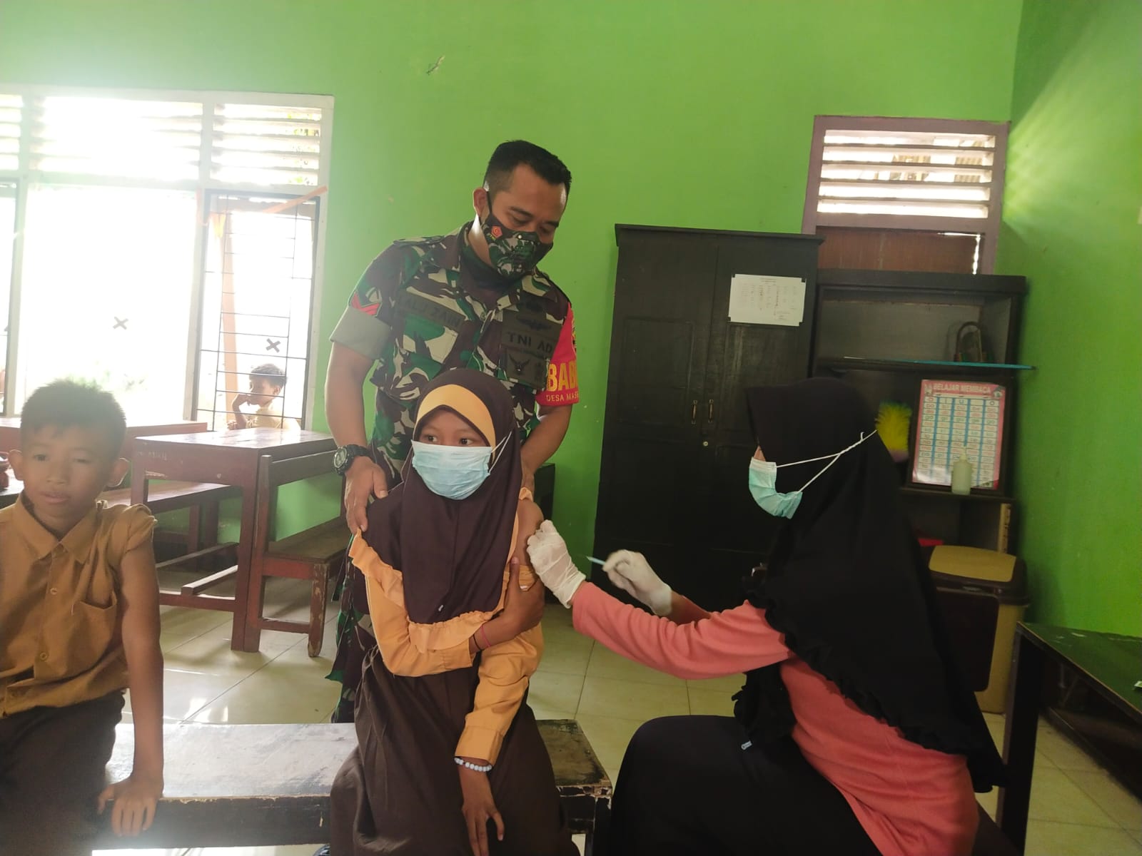 Vaksinasi bagi anak usia 6 – 11 tahun bertujuan sebagai upaya untuk menjaga imunitas tubuh dari virus covid-19 sehingga sinergi babinsa bersama dengan bhabinkamtibmas akan terus dilakukan dalam rangka percepatan vaksinasi.