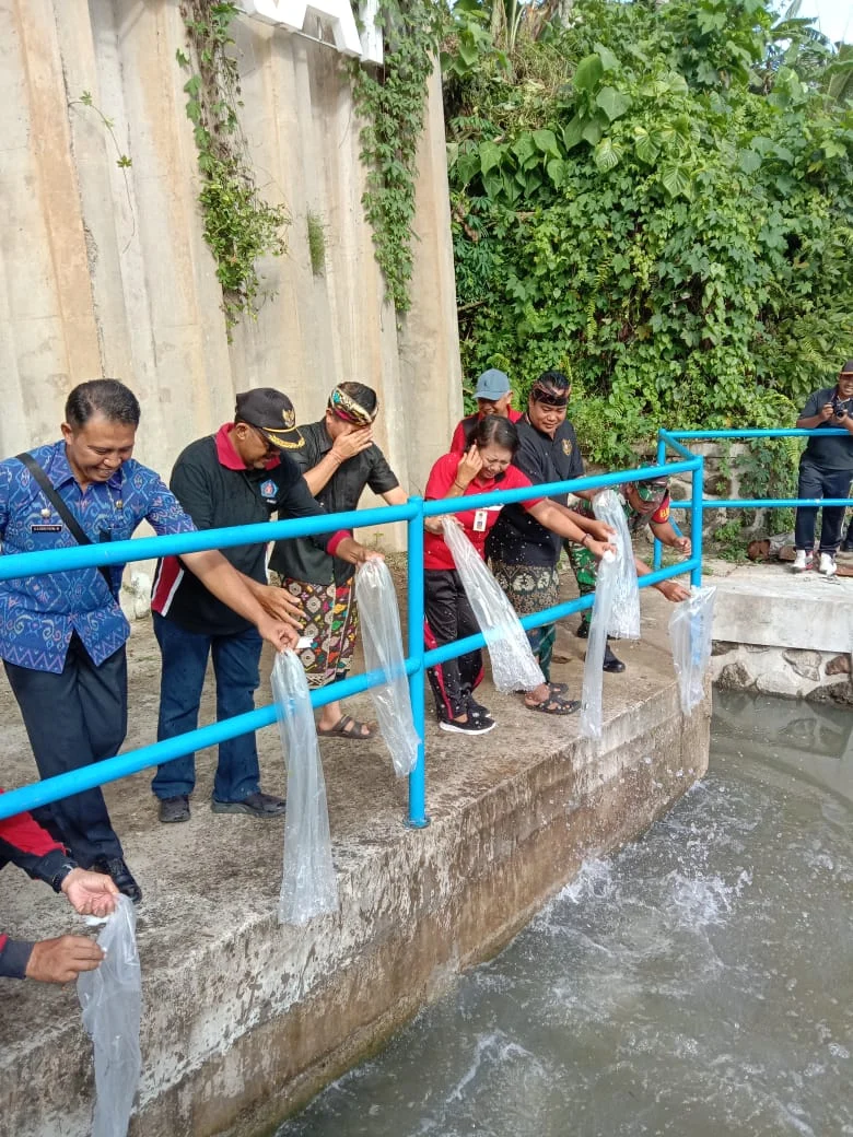 Kehadiran orang nomor satu di kabupaten Klungkung tersebut dalam rangka pelepasan 2000 ekor bibit ikan nila di embung Getakan.