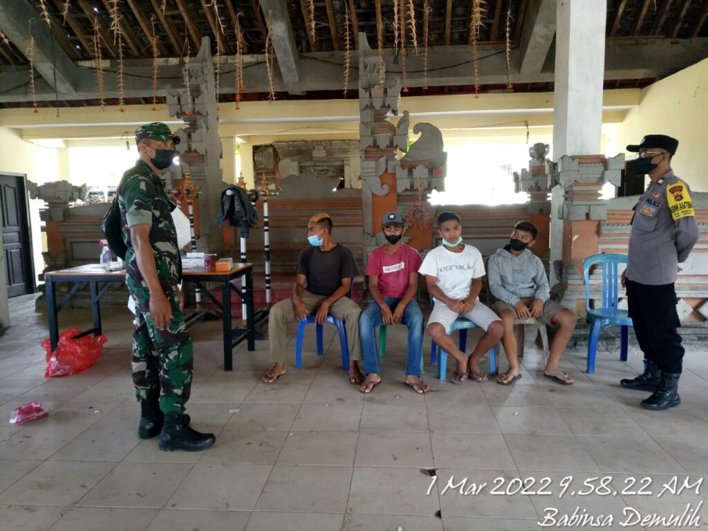 Bangli, “TABLOIDNUSANTARA” – Anggota Kodim 1626/Bangli yang bertugas sebagai Babinsa Koramil 1626-02/Susut mendampingi Tim Survelant Puskesmas Susut II melaksanakan kegiatan testing warga yang akan melaksanakan kegiatan pengarakan Ogoh-ogoh di wilayah Kecamatan Susut , Kabupaten Bangli, Selasa (1/3/2022).