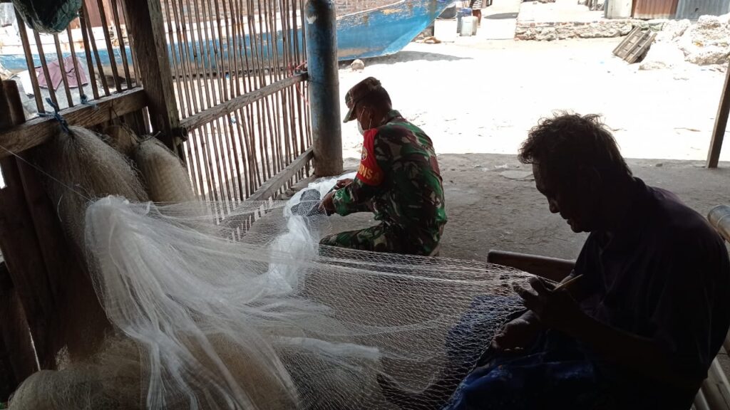 Selain memberikan himbauan, berbekal keahlian yang dimiliki Sertu Anwar, juga membantu memperbaiki alat tangkap atau pukat milik Bapak Hasan. (Kodim 1622/Alor)