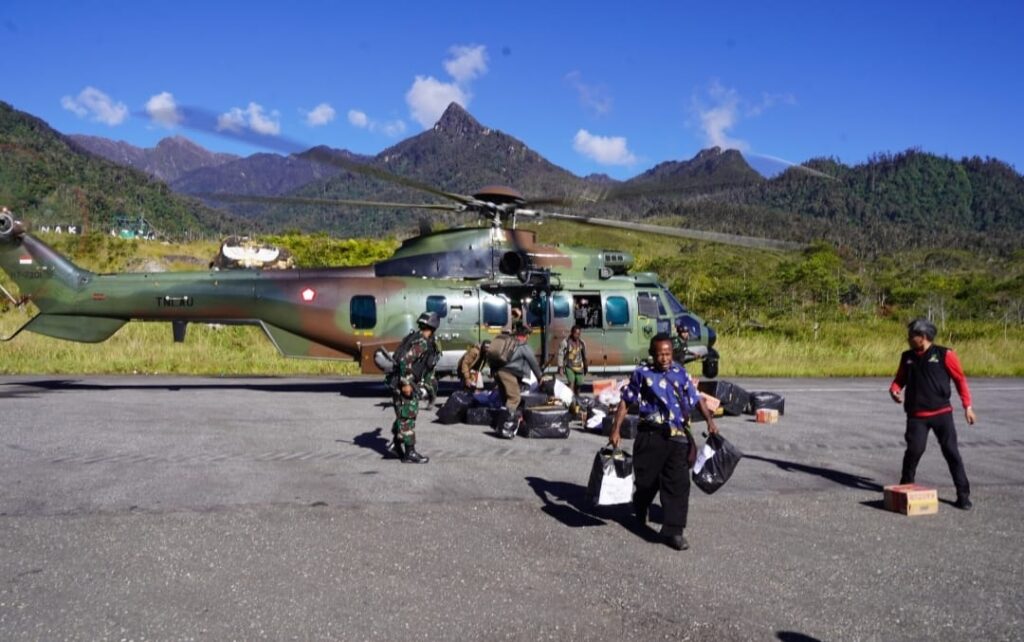 Menurut Kapendam, bantuan sosial itu diterbangkan dari Jakarta pada 24 Juli 2023 menggunakan pesawat C-130 Hercules A-1327 Skadron Udara 31 Lanud Halim Perdana Kusuma. “Distribusi bansos diangkut menggunakan helikopter Caracal milik TNI Angkatan Udara dari Bandara Mozes Kilangin Timika menuju Distrik Sinak,” ujarnya.