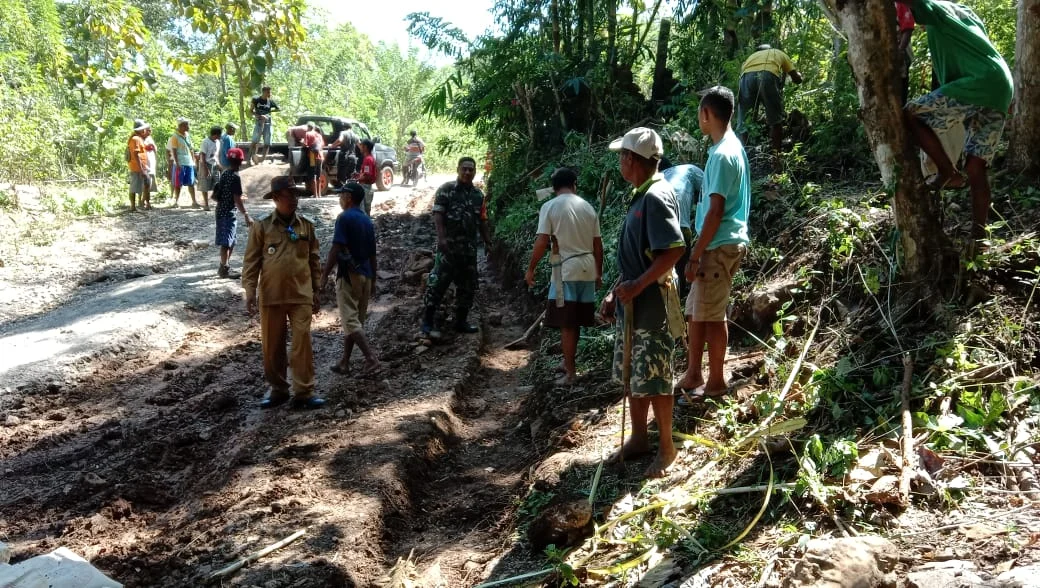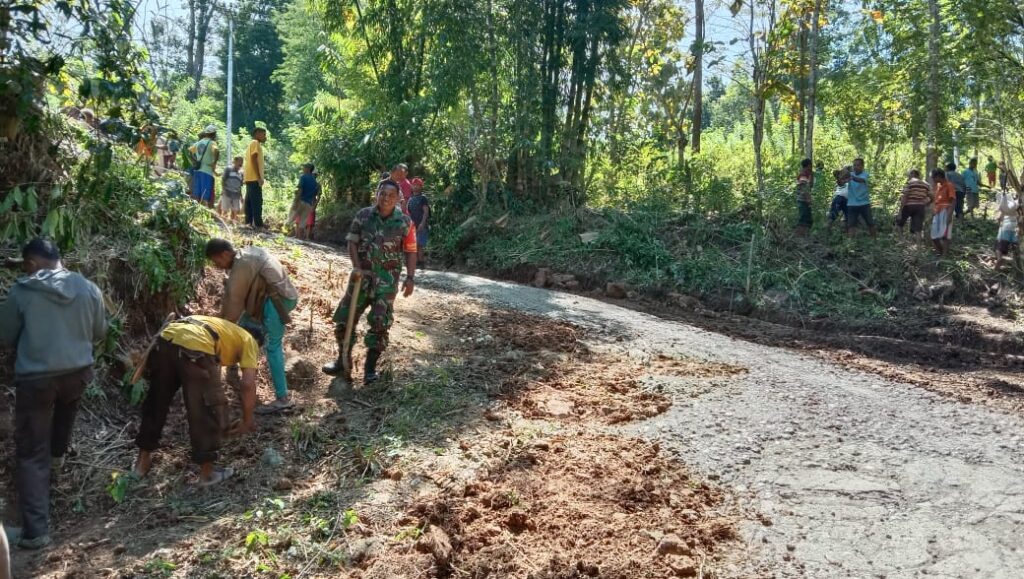 TTU, “TABLOIDNUSANTARA” – Puluhan warga Desa Makun dan warga Desa Manumean di Kecamatan Biboki Feotleu, Kabupaten Timor Tengah Utara NTT bersama anggota Koramil 1618-05/Biut ramai-ramai membersihkan jalur jalan sepanjang 150 meter di wilayah itu.