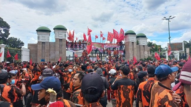 Massa ormas Pemuda Pancasila atau ormas PP diamankan polisi diduga melakukan pengeroyokan terhadapa salah satu anggota perwira polri saat mengamankan unjuk rasa di depan Kantor DPR RI.