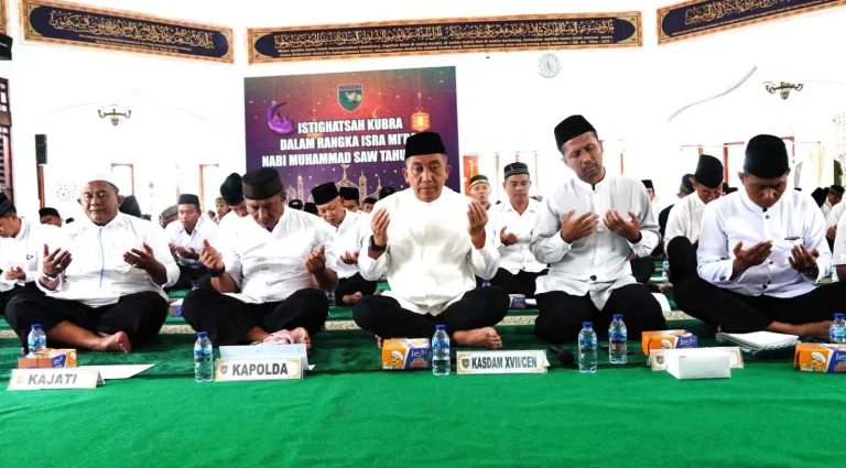 Jayapura, “Tabloid Nusantara” – Kodam XVII/Cenderawasih melaksanakan kegiatan Istighosah Kubra dalam rangka menyambut Isra Mi’raj Nabi Muhammad SAW Tahun 2023 kegiatan yang dipusatkan di Masjid Al-Fajr, Makodam XVII/Cenderawasih, Kota Jayapura secara langsung dan Virtual melibatkan Prajurit TNI Polri, PNS dan…