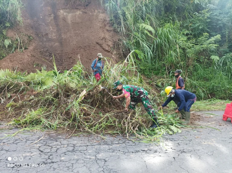 Bangli – Babinsa Koramil 1626-02/Susut Kodim 1626/Bangli Sertu Ketut Rediada bersama Bhabinkamtibmas ,Dinas PU Provinsi dan Kasitrantibum Kecamatan Susut membersihkan material longsoran tanah yang menutup akses jalan Banjar Penatahan desa Susut yang merupan jalur penghubung Bangli Kintamani. Hal tersebut disampaikan…