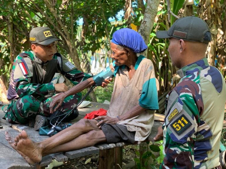 MERAUKE, “tabloidnusantara” – Personel Satgas Pamtas RI-PNG Yonif 511/DY Pos Rawa Biru yang dipimpin oleh Danpos Sertu Sumarji beserta personel kesehatan dengan berjalan kaki melaksanakan pengobatan door to door kepada masyarakat di Kampung Rawa biru, Distrik Sota, Kabupaten Merauke, Sabtu…