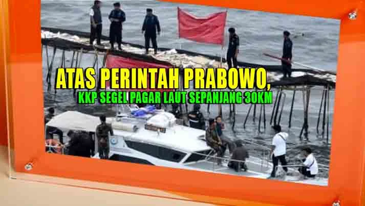 TANGGERANG, “tabloidnusantara.com” – Kementerian Kelautan dan Perikanan ( KKP) menyegel pagar laut yang tidak memiliki izin di perairan Kabupaten Tangerang, Banten, pada Kamis (9/1/2024). Pemagaran diduga tidak memiliki izin dasar Kesesuaian Kesesuaian Kegiatan Pemanfaatan Ruang Laut (KKPRL) dan berada di…