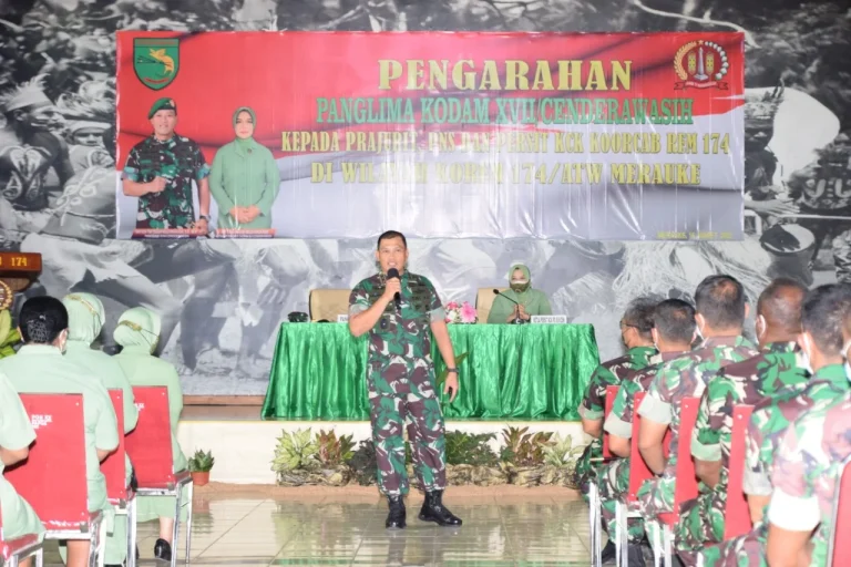 MERAUKE, “TABLOIDNUSANTARA.COM” – Panglima Kodam XVII/Cenderawasih Mayjen TNI Teguh Muji Angkasa, S.E., M.M. didampingi Ketua Persit KCK Daerah XVII/Cenderawasih Ny. Erni Teguh Muji Angkasa melaksanakan kunjungan kerja perdana di wilayah Korem 174/ATW Merauke. Dalam kunjungan perdananya tersebut Pangdam XVII/Cenderawasih menggelar…