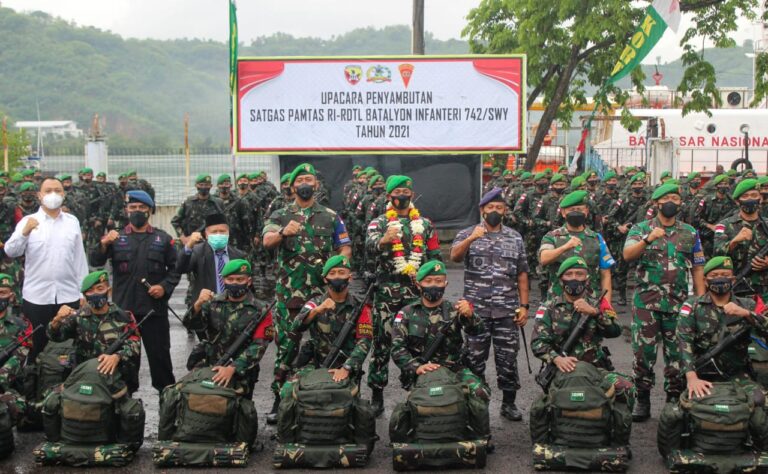 Brigjen TNI Ahmad Rizal Ramdhani menyambut kedatangan satgas pamtas RI-RDTL Sektor Timur, 400 personel Satgas Pamtas dari satuan Yonif 742/SWY