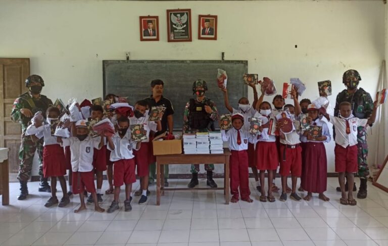Bentuk Kepedulian, Satgas Tni Bagikan Baju Seragam Dan Perlengkapan Sekolah