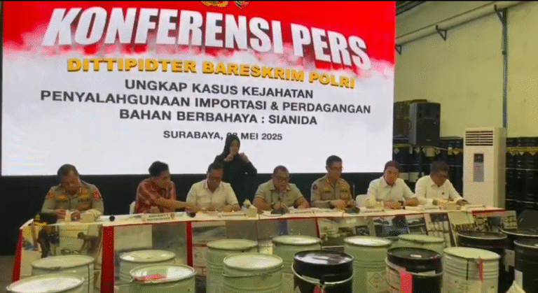 SURABAYA, tabloidnusantara. Direktorat Tindak Pidana Tertentu (Dittipidter) Bareskrim Polri membongkar praktik perdagangan ilegal bahan kimia berbahaya jenis Sodium Cyanide (Sianida) yang dilakukan secara terselubung di Surabaya, Jawa Timur. Pada penggerebekan di sebuah gudang di kawasan Jalan Margomulyo Indah tersebut, polisi…