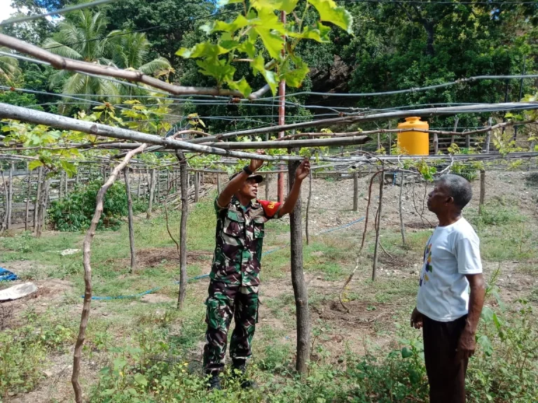 Belu, “TABLOIDNUSANTARA” – Babinsa Desa Silawan Koramil 1605-07/Wedomu Serka Duarte Dos Santos, pada Selasa (10/4/2022), memantau perkembangan pertumbuhan tanaman anggur yang kini pengembangannya telah dirintis dilahan pekarangan warga. Serka Duarte mengatakan bahwa menanam anggur itu gampang dan mudah, tidak membutuhkan…