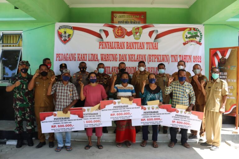 Malaka, “TABLOIDNUSANTARA” – Kodim 1605/Belu menyalurkan bantuan tunai kepada 8.000 orang pedagang kaki lima, warung dan nelayan (BTPKLWN) kepada masyarakat di wilayah Kabupaten Malaka, Provinsi Nusa Tenggara Timur. Penyerahan bantuan tunai dari TNI dan Pemerintah Pusat ini berlangsung di Makoramil…