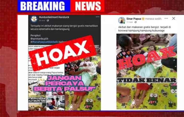 BOVEN DIGOEL, PAPUA SELATAN, Tabloidnusantara.com – Kembali berita bohong atau HOAX beredar di Media Sosial (Medsos) terkait seorang anak SD yang diisukan meninggal dunia akibat program Makan Bergizi Gratis (MBG) di Kampung Kubuwage, Kab. Boven Digoel, Prov. Papua Selatan di…