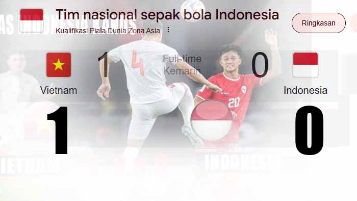 JAKARTA, “tabloidnusantara.com” – Timnas Indonesia terpaksa harus menelan pil pahit dari kekalahan dari Vietnam dalam pertandingan Grup B Piala AFF 2024 yang berlangsung di Stadion Viet Tri, Phu Tho, Minggu (15/12/2024), Indonesia kalah 0-1 dari Vietnam. Gol tunggal kemenangan Vietnam…