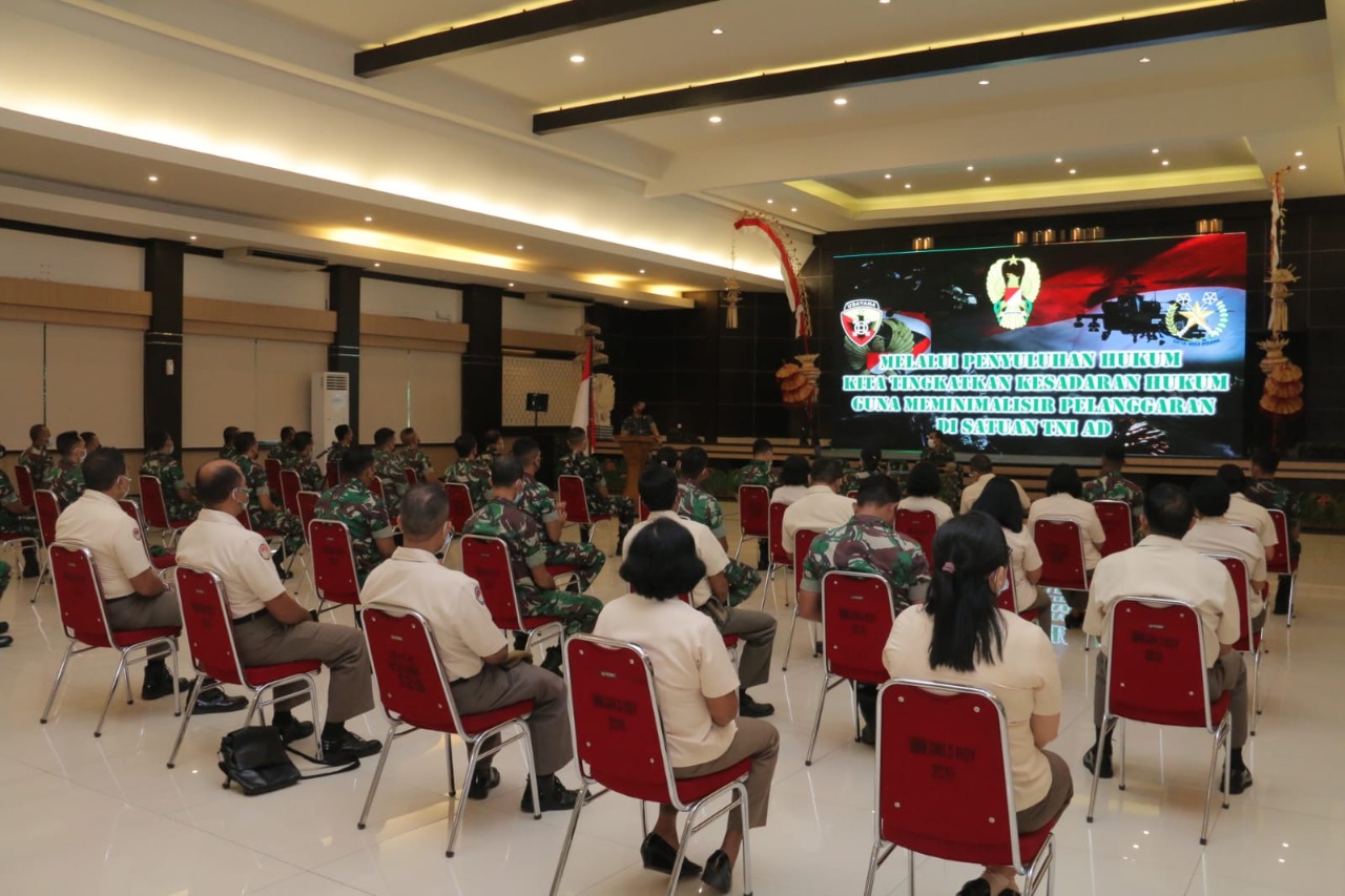 Mengusung tema ‘Melalui Penyuluhan Hukum Kita Tingkatkan Kesadaran Hukum Prajurit Guna Meminimalisir Tingkat Pelanggaran di Satuan TNI AD’, kegiatan Penyuluhan Hukum tersebut dihadiri oleh 50 orang peserta di lingkungan Makodam IX/Udayana.