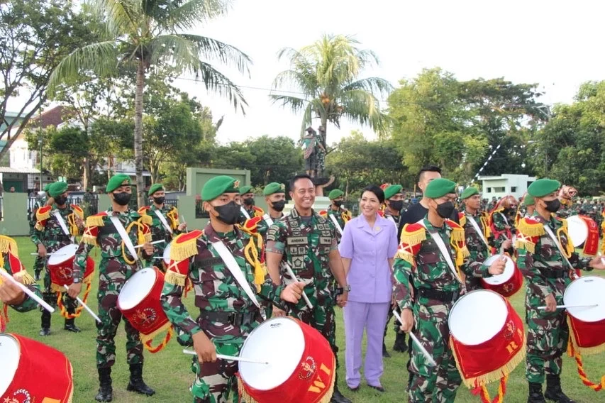 Kemudian, Panglima TNI dan Ketua Umum Dharma Pertiwi beserta rombongan juga meninjau Stand UMKM Ibu-Ibu Dharma Pertiwi yang berada di Makorem 162/WB sambil diiringi atraksi Drum Band Canka Wirayudha.