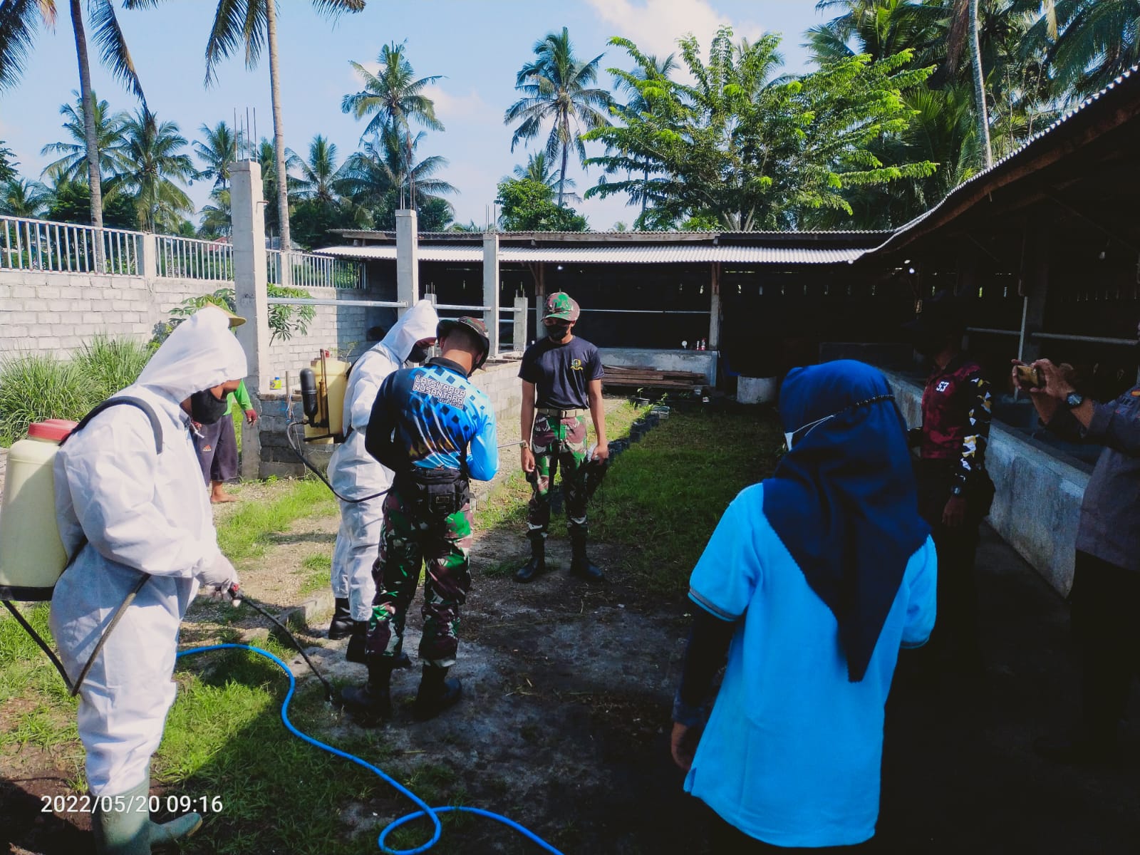 Dijelaskan Amin, pihaknya melalui para Babinsa di desa sejak beberapa hari yang lalu melakukan pendampingan tim UPTD Dinas Peternakan untuk melakukan pengecekan, pendataan dan penyemprotan disinfektan kandang sapi di beberapa tempat.