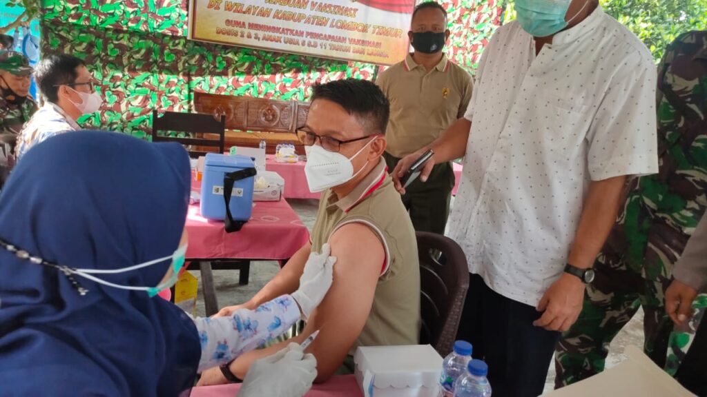 Sedangkan Kepala Dinas Kesehatan Kabupaten Lombok Timur Bapak Faturahman menjelaskan bahwa sampai dengan saat ini pencapaian vaksinasi untuk wilayah Kabupaten Lombok Timur untuk vaksinasi tahap pertama sebanyak 92,9 persen, tahap kedua mencapai 60,23 persen, sedangkan vaksinasi tahap pertama untuk anak-anak sudah mencapai 71,44 persen dan untuk mencapai percepatan vaksinasi harus ada kerjasama seluruh stakeholder seperti yang dilakukan oleh TNI.