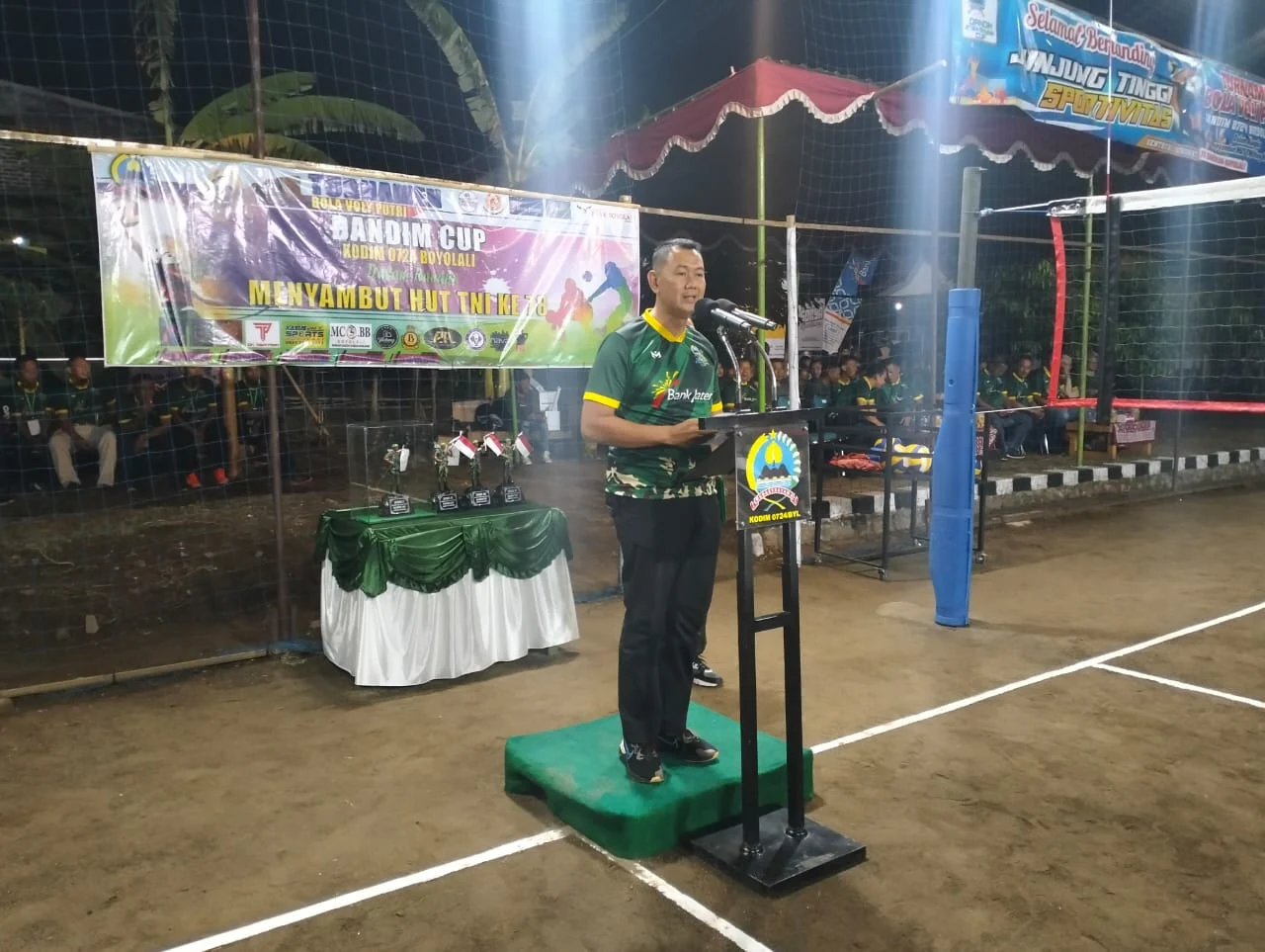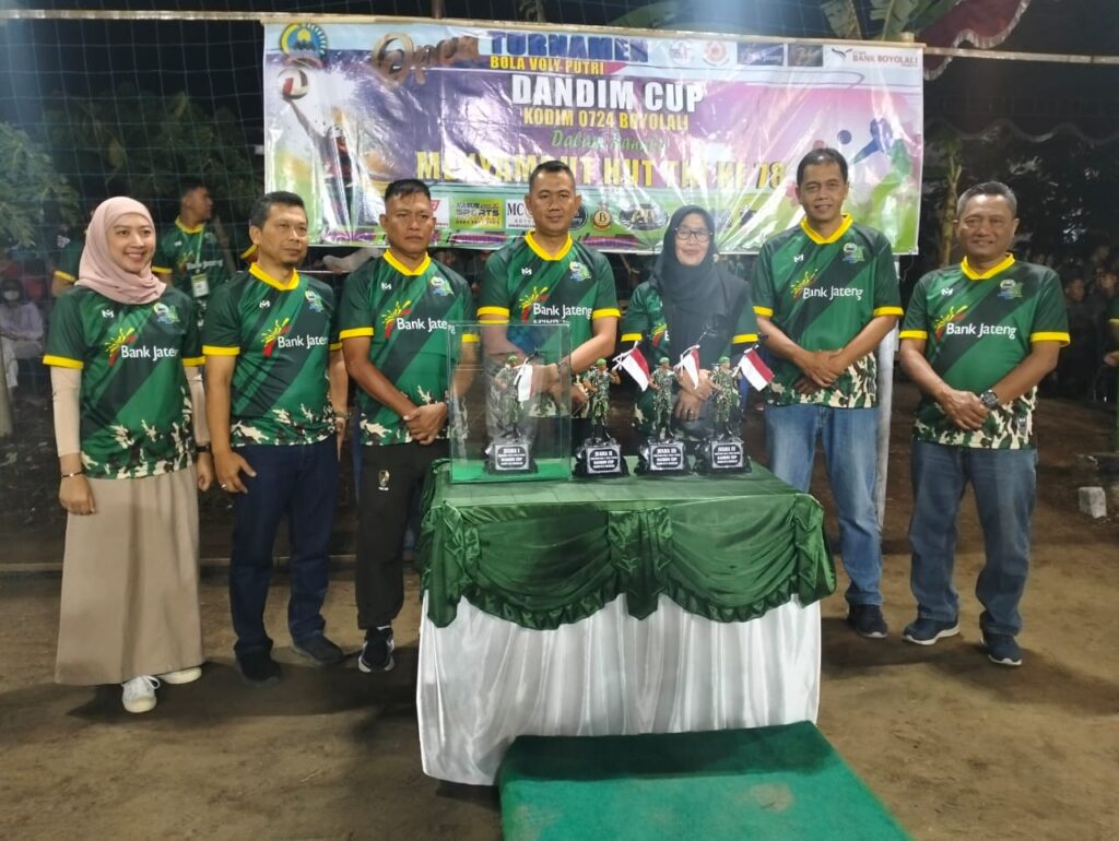 “Dengan mengucap “Bismillahirrahmanirrahim” turnamen Bola Volly Dandim Boyolali Cup pada hari ini Sabtu, tanggal 23 September 2023 pukul 20.23 WIB. “Dalam rangka HUT TNI Ke 78 tahun 2023, serta memperingati HUT ke-73 Kodam IV Diponegoro saya nyatakan dibuka. “Pungkasnya.