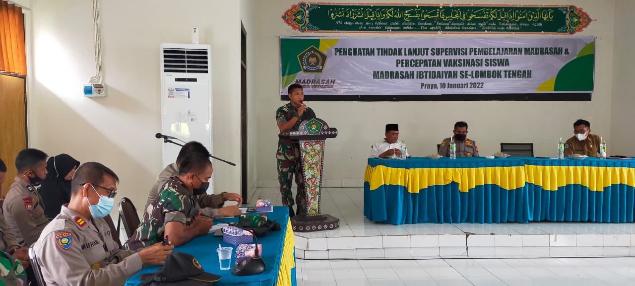 Lombok Tengah, “TABLOIDNUSANTARA.COM” – Dandim 1620/Lombok Tengah Hadiri Acara Penguatan tindak lanjut supervisi pembelajaran madrasah dan percepatan vaksinasi siswa Madrasah Ibtidaiyah Se-Lombok Tengah bertempat di Kantor Kementerian Agama Kecamatan Praya Kabupaten, pada hari Senin (10/1/2022)