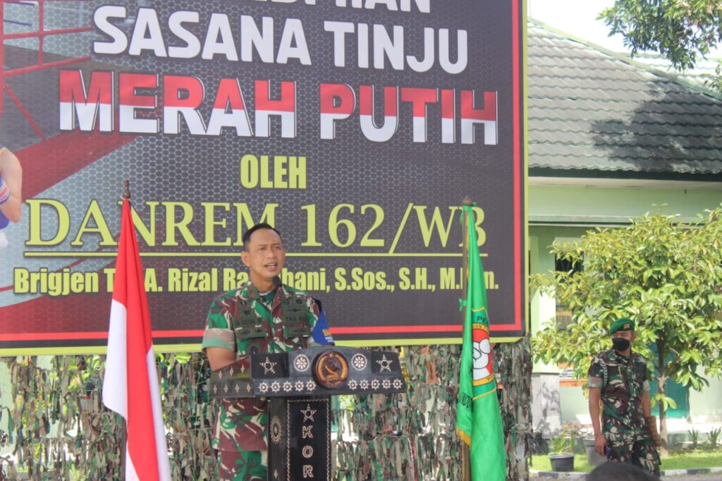 Mataram, “TABLOIDNUSANTARA.COM” – Dipenghujung masa jabatannya sebagai Komandan Korem 162/Wira Bhakti, Brigjen TNI Ahmad Rizal Ramdhani, S.Sos., S.H., M.Han., meresmikan Sasana Tinju Merah Putih di Markas Komando Batalyon Infanteri (Mako Yonif) 742/SWY Gebang Kota Mataram, pada Rabu (22/12/2021).