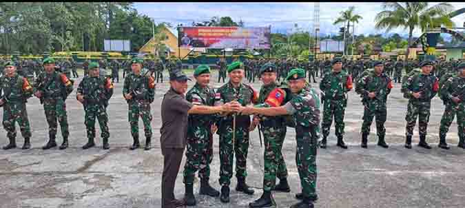 “Kedatangan kalian diwilayah ini adalah untuk membantu Kodam XVII/Cenderawasih dalam melaksanakan tugas operasi yang digelar di wilayah Papua, Pam Obvitnas yang bersifat strategis merupakan salah satu tugas TNI-AD dalam melaksanakan Operasi Militer Selain Perang (OMSP), sebagaimana tercantum dalam UU RI Nomor 34 Tahun 2004,” tegas Danrem 174/ATW.