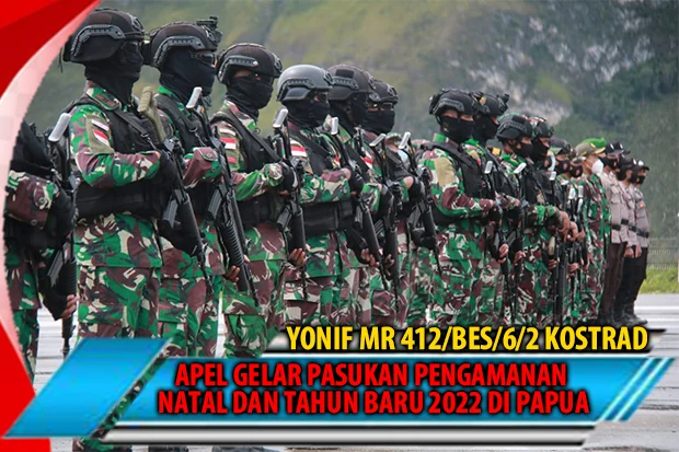 LANNY JAYA, “TABLOIDNUSANTARA.COM” – Dansatgas Yonif MR 412/BES/6/2 Kostrad Letkol Inf Moch. Renaldy H., S.Sos., M.Si. mengikuti Apel Gelar Pasukan Operasi “Lilin Cartensz 2021” dalam rangka kesiapan pengamanan perayaan Natal 2021 dan Tahun Baru 2022, yang dipimpin oleh Kapolres Lanny Jaya AKBP Soeroso, S.H. dan dihadiri oleh unsur Komandan Satuan TNI, Pejabat utama Polres Lanny Jaya dan Pejabat Otoritas Bandara Tiom serta Pasukan dari TNI/Polri. Kamis (23/12)