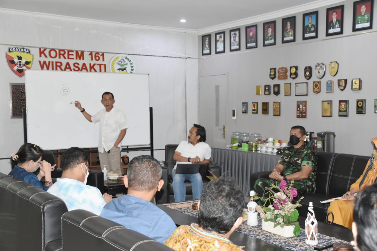 Brigjen TNI Budiman menyampaikan ucapan terima kasih kepada semua pihak yang sudah hadir di Korem 161/WS dan para Kasi Kasrem 161/WS. “Pada hari ini sengaja kita berkumpul dan berdiskusi singkat-singkat saja yang berkaitan dengan apa yang sering saya sampaikan bahwa dimanapun kita ditugaskan selalu bermanfaat bagi daerah setempat,” ujarnya.