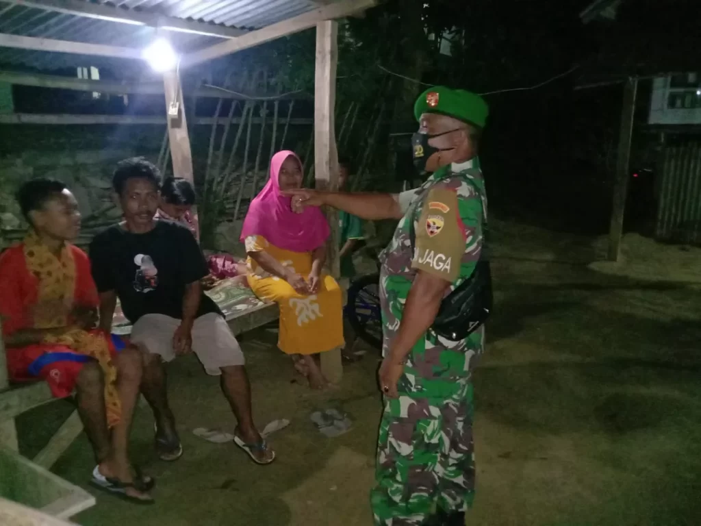 Sumbawa Barat, “TABLOIDNUSANTARA.COM” – Anggota Koramil 1628-03/Seteluk melaksanakan patroli malam guna memastikan protokol kesehatan dan mengedukasi masyarakat agar melakukan vaksinasi diwilayah desa binaan Kabupaten Sumbawa Barat, pada Jumat (11/2/2022)