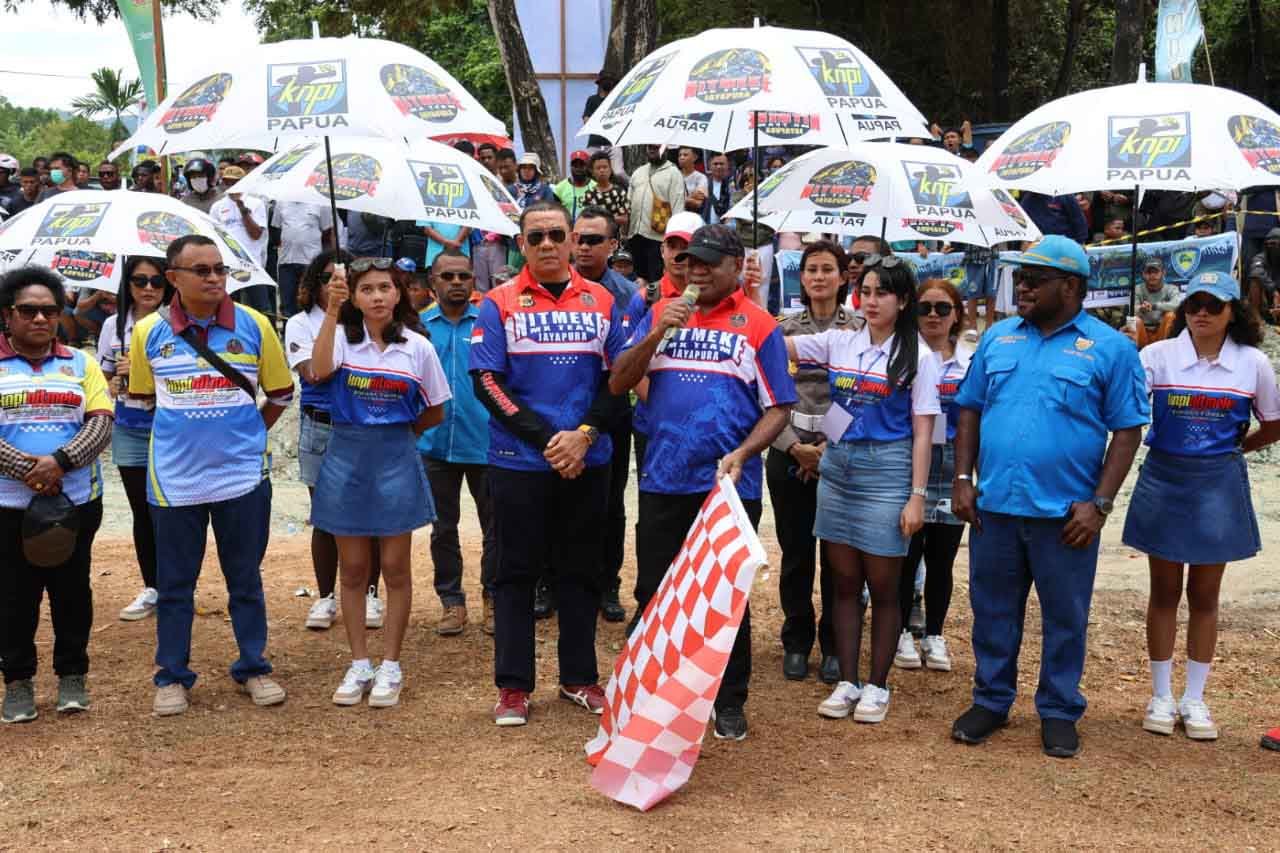 Kegiatan yang mengusung tema Kolaborasi Untuk Kemajuan Pemuda dan Otomotif itu turut dihadiri Kasi BPKB Subdit Regident Ditlantas Polda Papua Kompol Dian Novita Pietersz, S.I.K, Ketua DPD KNPI Provinsi Papua, Benyamin Gurik, S.IP, Ketua Umum NITMEKE MX Team Papua, Dr. Drs. M Rusdianto M.Si serta para Panitia dan peserta Event Balap Motor KNPI Nitmeke Open Grasstrack Championship 2023.