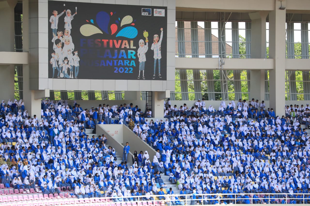 Solo, “Tabloidnusantara.com” – Gubernur Jawa Tengah Ganjar Pranowo menyapa puluhan ribu pelajar yang mengikuti Festival Pelajar Nusantara di Stadion Manahan, Senin (31/10/2022). Selain yang hadir secara luring di Stadion Manahan, acara itu juga diikuti oleh pelajar dari berbagai daerah se-Indonesia. Ganjar memberikan semangat agar pelajar memiliki cita-cita tinggi dan memiliki karakter yang sesuai dengan nilai Pancasila.