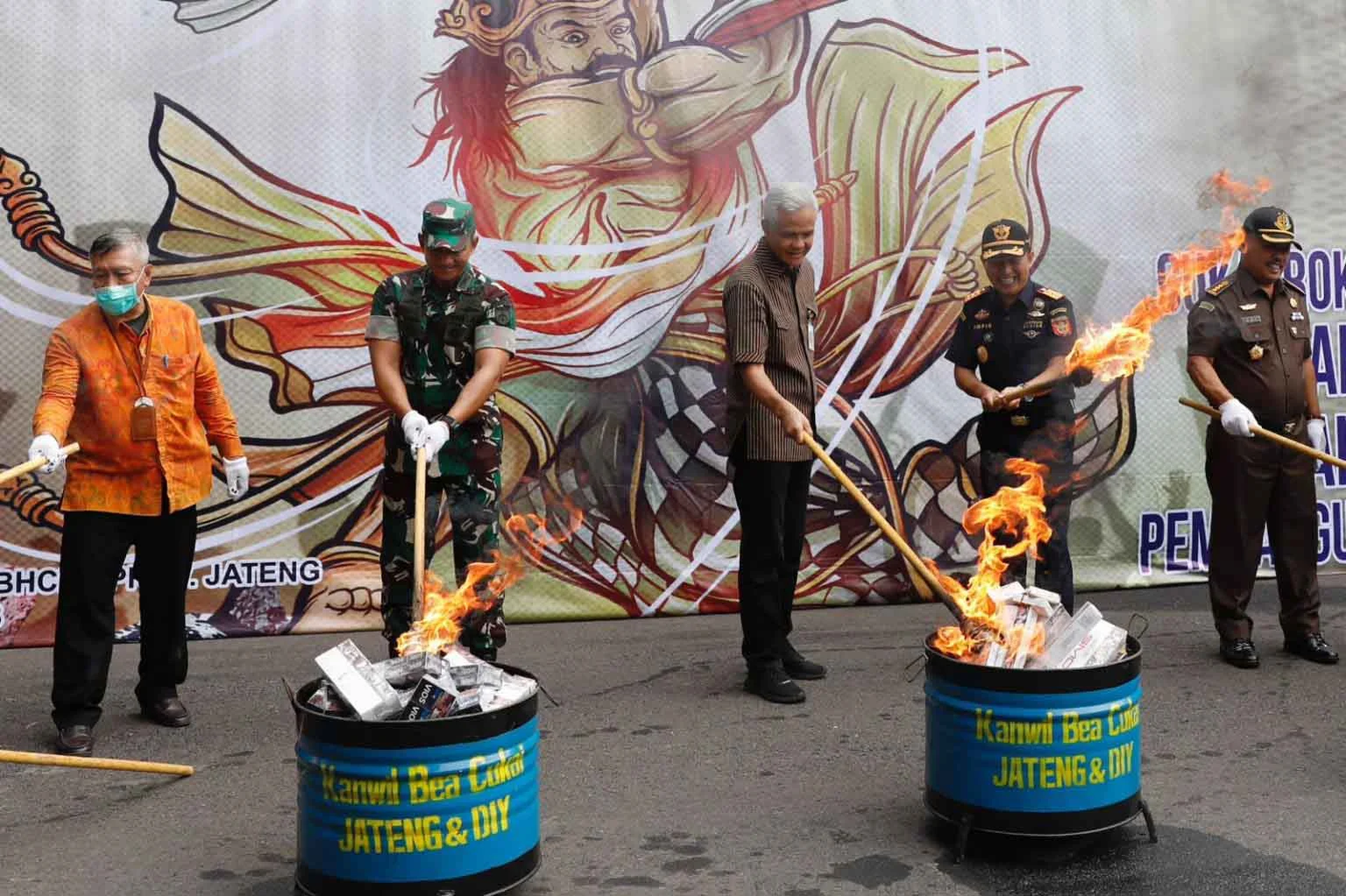 Ganjar Bersama Bea Cukai Jateng dan DIY, Musnahkan 9,7 Juta Rokok Ilegal