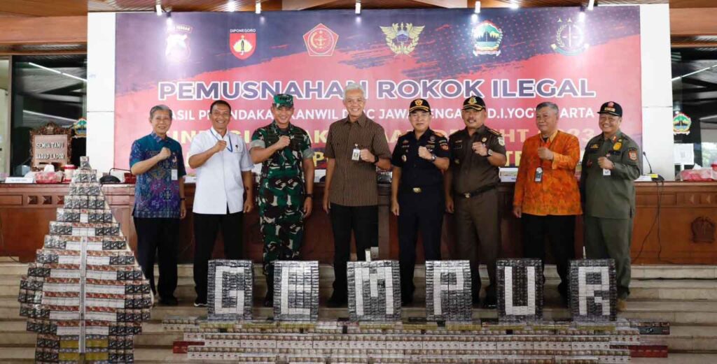 Semarang, “tabloidnusantara.com” – Pemerintah Provinsi Jawa Tengah bersama Kantor Wilayah Bea Cukai Jateng dan DIY, melakukan pemusnahan sebanyak 9,7 juta batang rokok ilegal di halaman Kantor Gubernur Jateng, Selasa (31/1/2023).