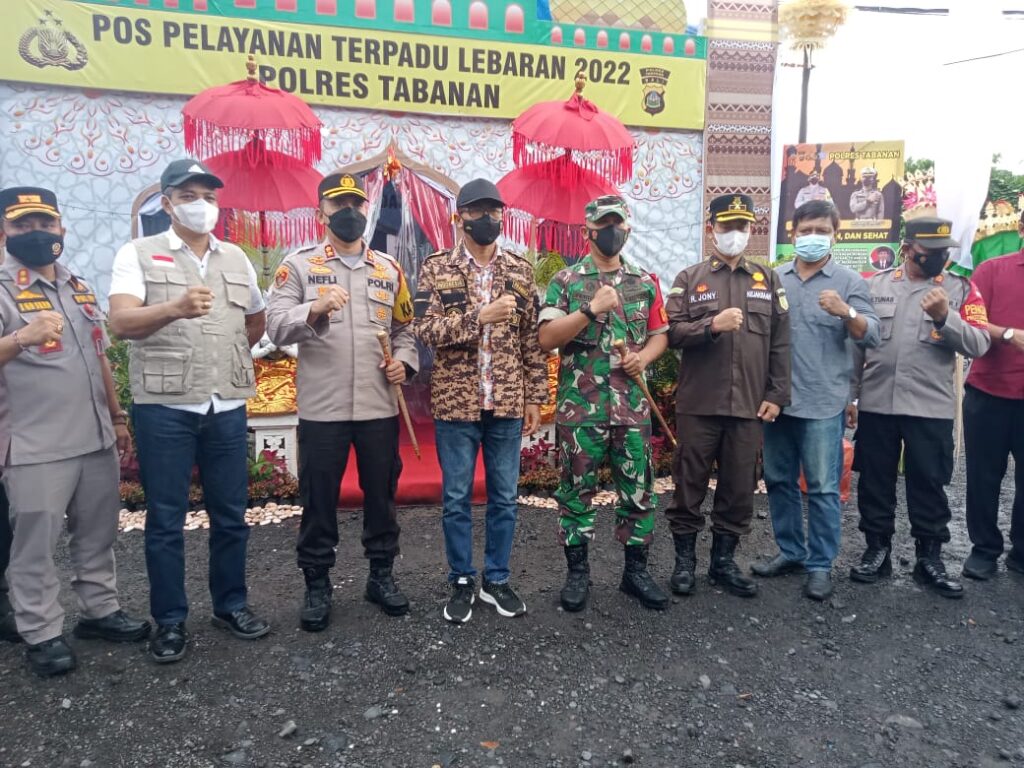 Tabanan, “TABLOIDNUSANTARA” – Sehari menjelang Lebaran, Dandim 1619/Tabanan Letkol Inf Ferry Adianto, S.I.P., bersama Forkopimda (Forum Komunikasi Pimpinan Daerah) meninjau Pos Pelayanan Terpadu Lebaran 2022 di sejumlah titik di wilayah Kabupaten Tabanan, pada Minggu (1/5/2022).