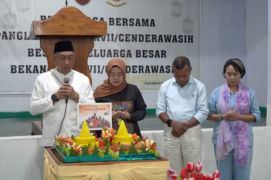 Disela-sela kegiatan tersebut, Kasdam XVII/Cenderawasih melakukan pemotongan tumpeng untuk memperingati HUT Kopassus ke-71 tahun didampingi Wakil Ketua Persit KCK Daerah XVII/Cenderawasih Ny. Novita R. Sidharta Wisnu Graha dan Kolonel Inf Joao Xavier Baretto Nunes, S.E., M.M.