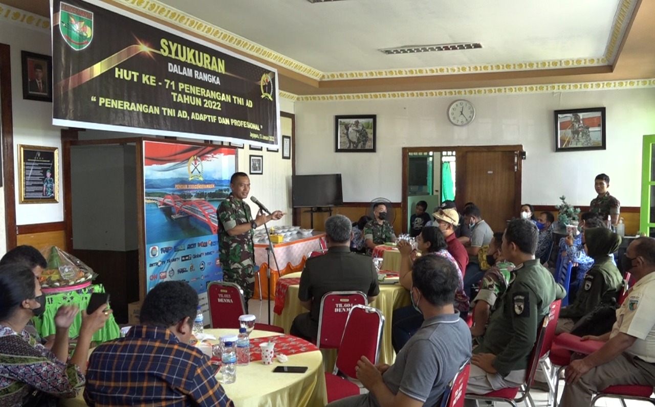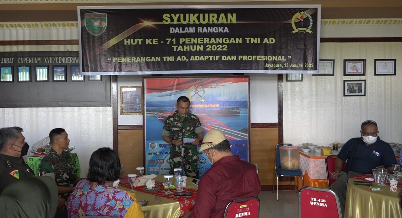 Kapendam XVII/Cenderawasih Kolonel Inf Aqsha Erlangga, S.H., M.H., menjelaskan bahwa pada peringatan Hari Ulang Tahun Ke-71 Dinas Penerangan TNI-AD Tahun 2022 mengusung tema Penerangan TNI, Adaptif dan Profesional.