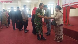 Sumba Barat, “TABLOIDNUSANTARA” – Pjs. Kasdim 1613/Sumba Barat Mayor Caj Mulyono mewakili Dandim 1613/Sumba Barat Letkol Czi Rahadian Firnandi, S.Hub.Int., menghadiri pelantikan dan pengambilan sumpah Sekertaris Daerah (Sekda) Kabupaten Sumba Barat di Aula Kantor Bupati Sumba Barat, Sabtu (25/06/2022).