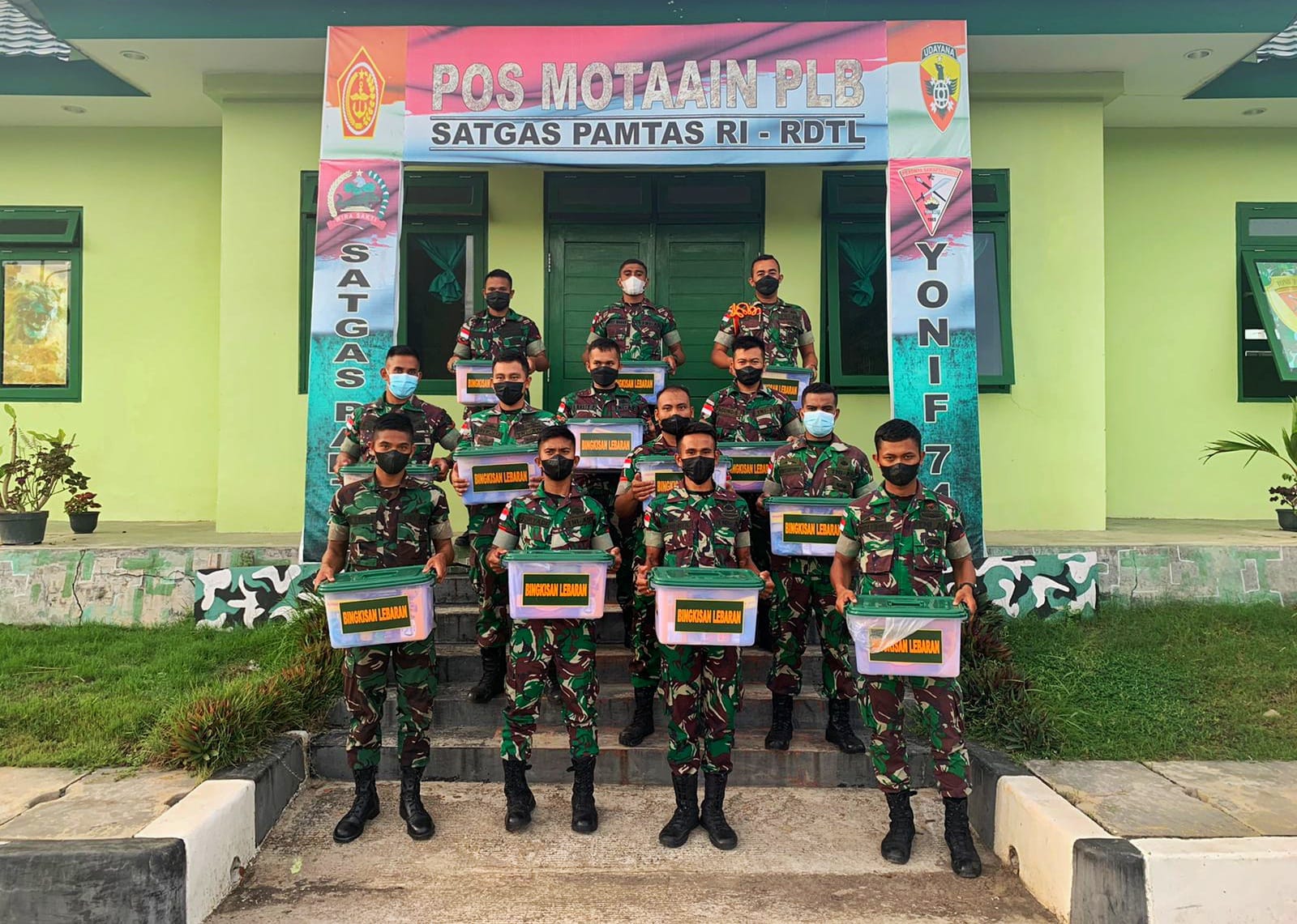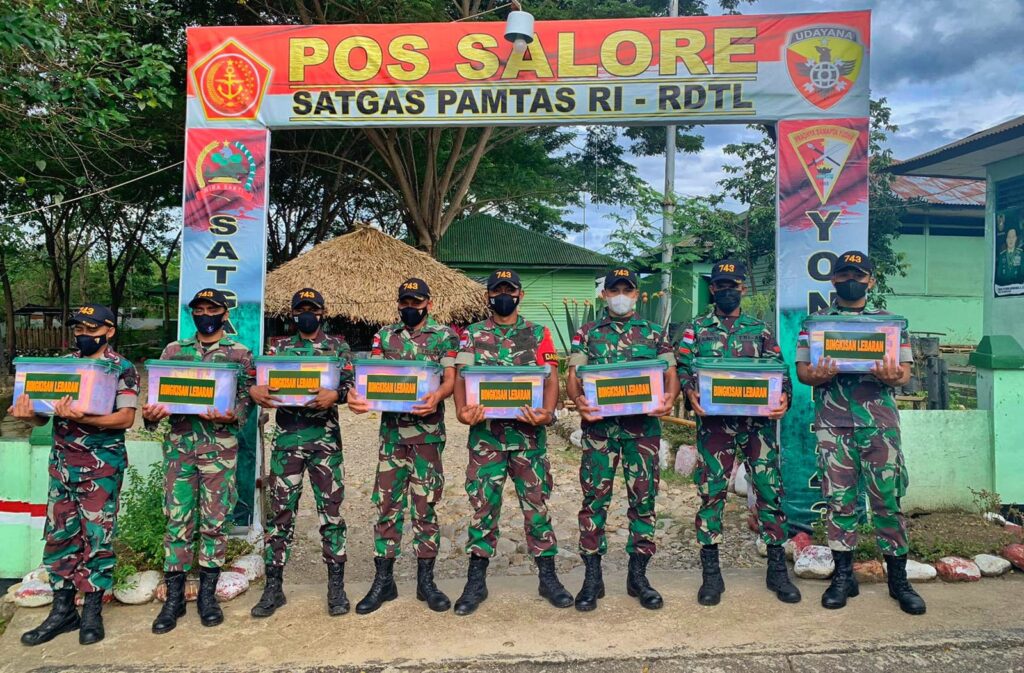 Satgas Pamtas RI-RDTL Yonif 743/PSY mendapat 500 bingkisan yang dikemas dalam box plastik yang beriai 17 item dan telah disalurkan ke 38 Pos jajaran Satgas Pamtas RI-RDTL Yonif 743/PSY.