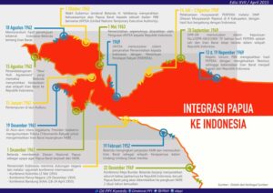 JAKARTA, “tabloidnusantara.com” – Pulau Papua (dahulu Irian Barat antara1956 – 1973) dan Irian Jaya (1973 – 2000) memiliki luas sekitar 312.224,37 km2 dan terletak di ujung timur dari wilayah Indonesia. Pulau Papua dari dulu sampai dengan sekarang memiliki potensi sumber daya alam yang bernilai ekonomis dan sangat strategis. Kekayaan alam yang melimpah, berdasarkan catatan sejarah telah mendorong kerajaan-kerajaan Nusantara maupun bangsa-bangsa asing untuk menguasai pulau Papua.