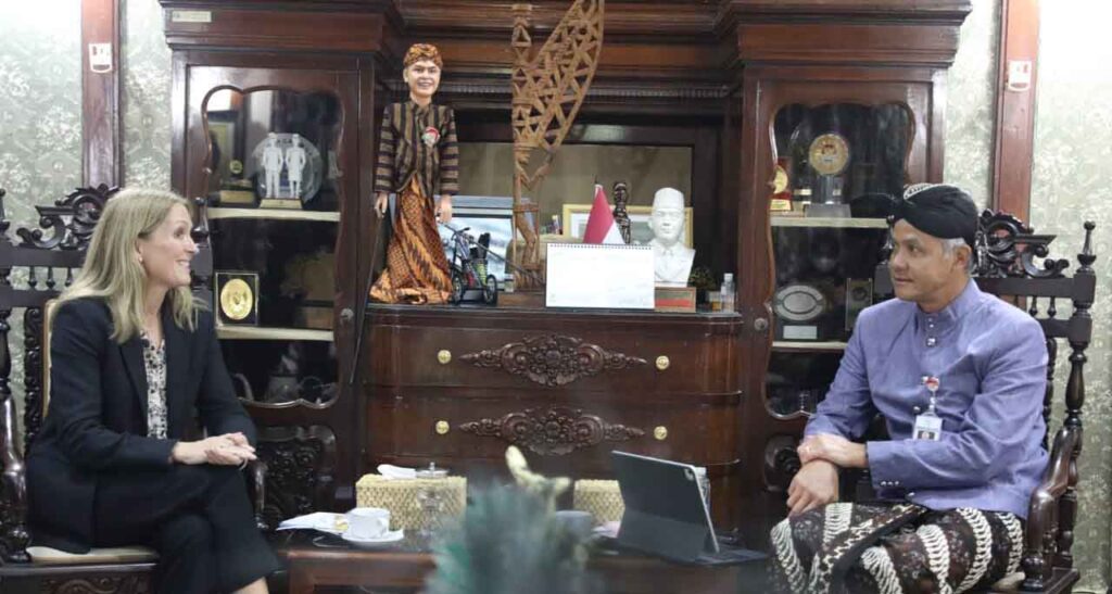 Semarang, “Tabloid Nusantara” – Gubernur Jawa Tengah Ganjar Pranowo, menerima kunjungan Duta Besar Norwegia untuk Indonesia, Rut Kruger Giverin, di Rumah Dinas Puri Gedeh, Kamis (16/2/2023). Keduanya berbincang tentang tantangan negara, hingga potensi kerja sama dalam hal transisi energi.