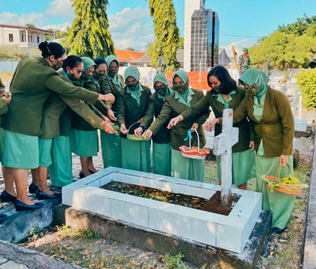 Kupang, “TABLOIDNUSANTARA” – Dalam rangka memperingati Hari Ulang Tahun (HUT) Yonif 743/PSY ke 57 Tahun 2022, Prajurit dan Persit Kartika Chandra Kirana Ranting 2 Yonif 743/PSY melaksanakan ziarah di Taman Makam Pahlwan (TMP) Dharmaloka Kupang, Nusa Tenggara Timur, pada Rabu (16/03/2022).