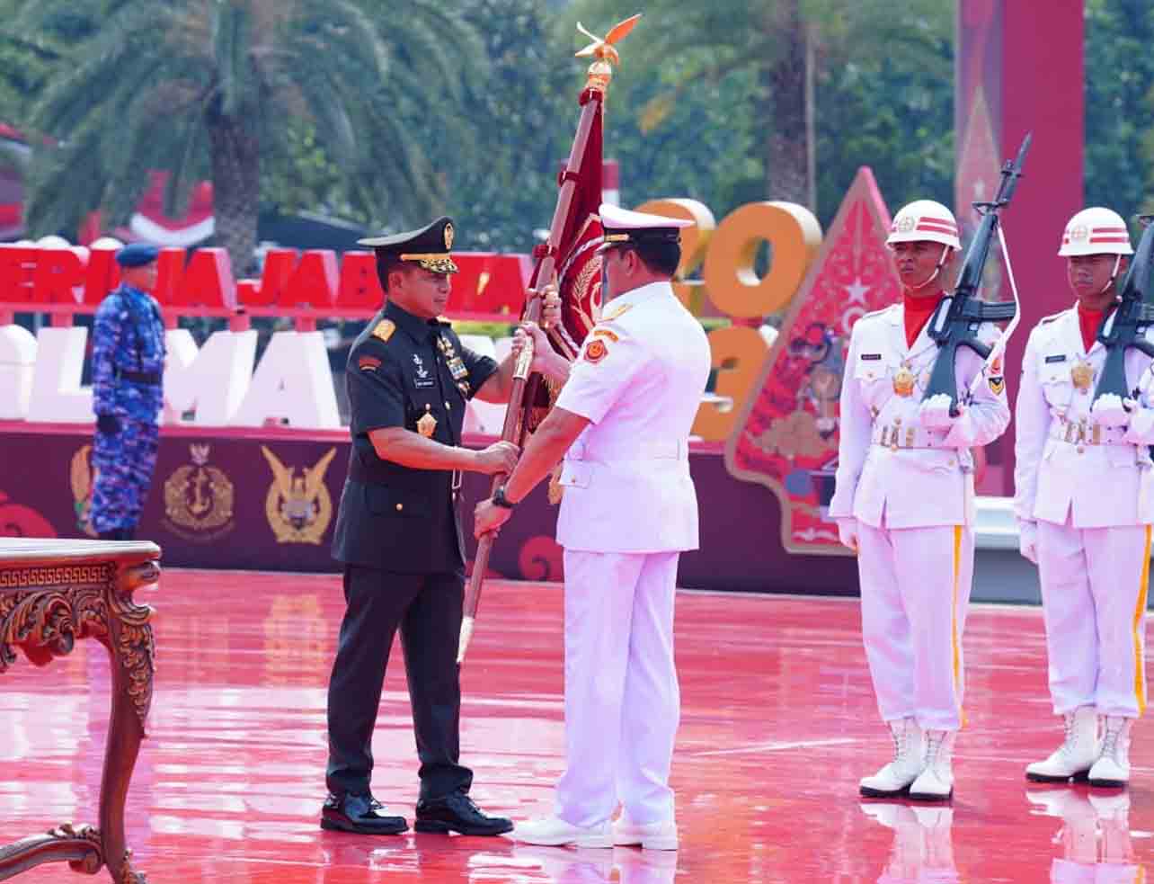 Dalam pelaksanaan upacara tersebut bertindak selaku Inspektur Upacara adalah Laksamana TNI Yudo Margono, S.E., M.M dan Jenderal TNI Agus Subiyanto,  dan bertindak sebagai Komandan Upacara Kolonel Laut (P) Sandy Kurniawan yang sehari-hari menjabat sebagai Komandan Lanal Palembang, Upacara Sertijab tersebut ditandai dengan penyerahan Panji TNI “Tri Dharma Eka Karma” dan penandatanganan Naskah Serah Terima Jabatan dari Laksamana TNI Yudo Margono, S.E., M.M kepada Jenderal TNI Agus Subiyanto.